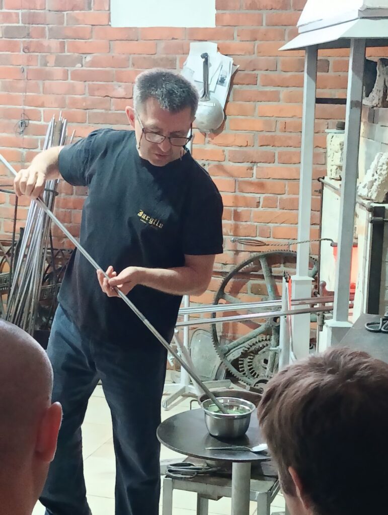 W czerwcu uczestnicy projektu „Akcja motywacja” współfinansowanego ze środków Państwowego Funduszu Rehabilitacji Osób Niepełnosprawnych, w ramach aktywnych form spędzania czasu wolnego uczestniczyli w wycieczce do Glass Studio Marek Jargiło we Wronowie. Podczas wizyty uczestnicy pod okiem mistrza szkła artystycznego Pana Marka Jargiło zostali oprowadzeni po mini hucie szkła, gdzie zapoznali się z tradycyjną techniką formowania naczyń szklanych oraz wysłuchali opowieści jak i kiedy powstało szkło. Wzięli udział w pokazie dmuchania szkła, po którym każdy spróbował własnych sił przy tworzeniu kwiatka szklanego z gorącego szkła. Następnie przeszli do pracowni, w której mogli ozdobić szklany placek metodą grawerowania. Wykonane prace każdy z uczestników zabrał ze sobą do domu na pamiątkę.